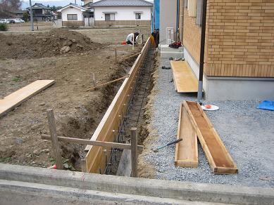 3方を擁壁+フェンスで囲み、カーポートとアプローチの工事です。