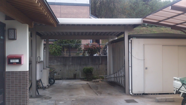 こんにちは 佐久店 飛鳥馬です。 母屋と倉庫の間のスペース。 玄関の庇や手前のカーポート、更には灯油タンクや給湯器、 勝手口の扉や下水管などの埋設物などなど・・・ いろいろなものがありましたが、ちょうどよい具合に納まり 完成しました。 耐積雪、100㎝型の丈夫なカーポートです。 PR |