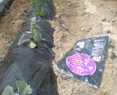 最近あまり見かけなくなった黒いゴミ袋をつかって、手製のマルチシートを被せました。