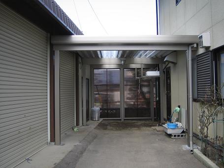 お住まいの母屋と倉庫の間にピッタリと納まりました。