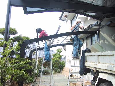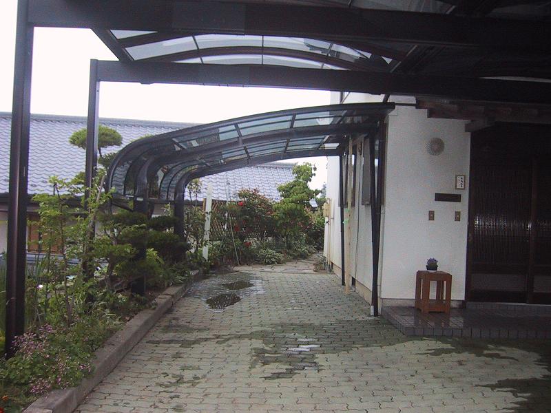高さも母屋のひさしの下、目いっぱいのところに合わせ、植木もカーポートに触る所だけ剪定しました。