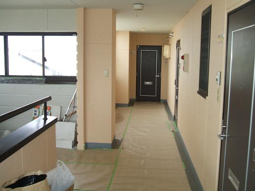 廊下部分や階段の壁などの共有部分の塗装を行っています。