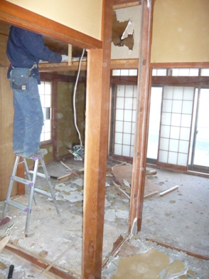 間仕切壁を取り壊して広いLDKに造り直していきます。