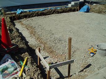 土間の下地が終わって基礎の鉄筋を組みベースコンクリートを打ちます。