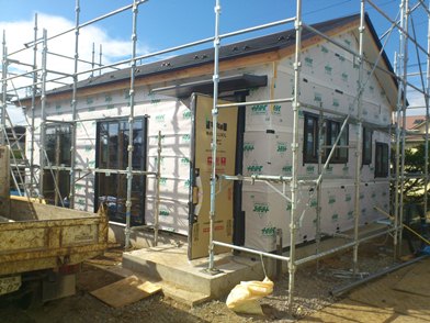 さて現場ですが、佐久市のK様邸新築工事は上棟して