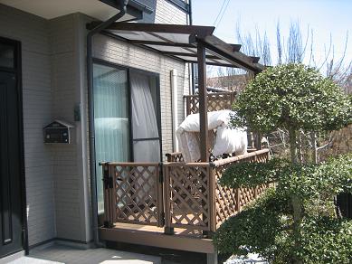人工木材のデッキにパーゴラ風のテラスを設置しました。