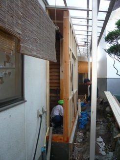 現在の母屋がモルタル壁なのでそれに合わせて下地を作ります。