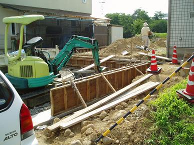 駐車場の漉き取り作業も終わり、周りの土留め壁をこれから作ります
