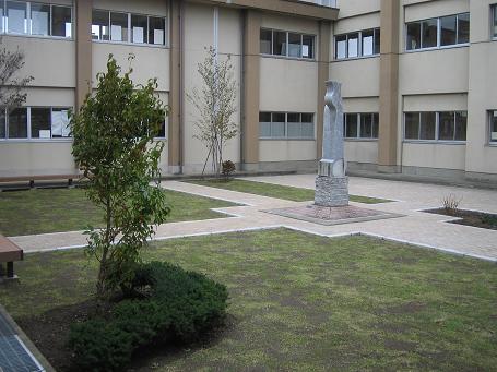 4方を校舎に囲われた中庭を、生徒さんの【憩いのスペースとして活用できるように】とのコンセプトで施工しています。