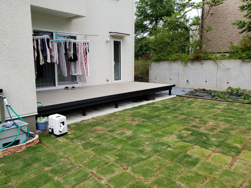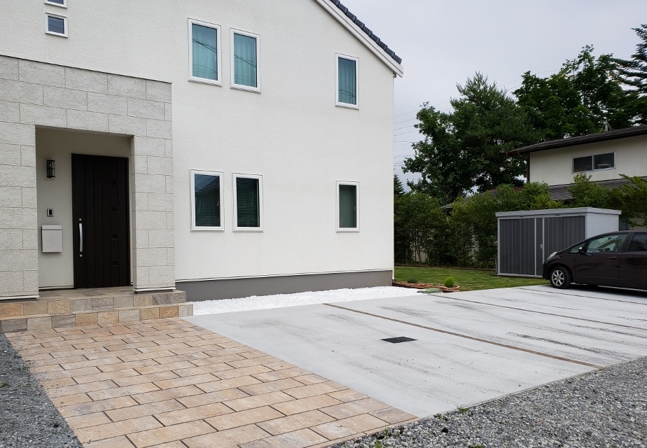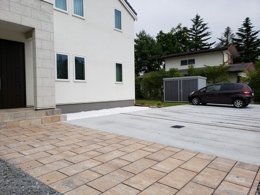 カーポート・デッキ・花壇・枕木立て・植栽・アスファルト舗装駐車場工事