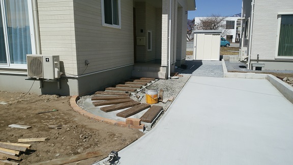 こんにちは 佐久店 キスミです。 暖かい日が続き、現場にいてもジャンバーを を脱がないと暑いです。 このまま暖かい日が続けばいいなと思います。 今日は、今工事中の現場を紹介します。 駐車場コンクリート打設勾配がきついのでハケ引きで滑りづらいようにしました。 アプローチは、コンクリート製枕木を使い周りは化粧砂利を敷きます。 コンクリートを打設するには、最適な暖かさの日が続き良かったです。 PR |
