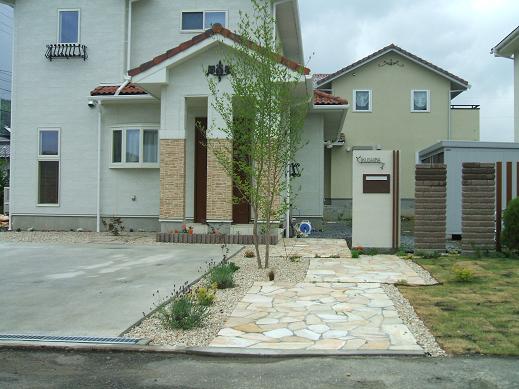 こんにちは 佐久店 飛鳥馬です。 先日、施工したアプローチと駐車スペース工事の紹介です。アイアンサインと 木目調ポストを組み込んだ門袖とブロックレンガ積みを組み合わせた門廻りです。 落葉樹のメインツリーと少しの ハーブ類を植えた敷砂利仕上げです。施工前 完成写真 コニファーと貼り芝仕上の前庭は とても日当りが良く、 明るいイメージになりました。PR |
