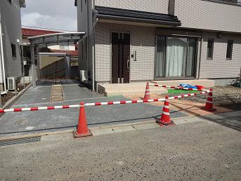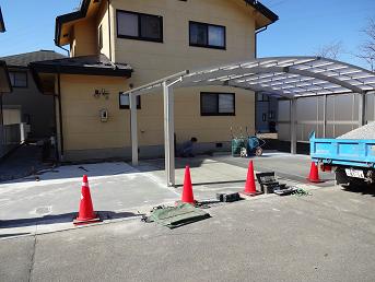 3台用カーポートを設置して土間コンクリート打込が終わり