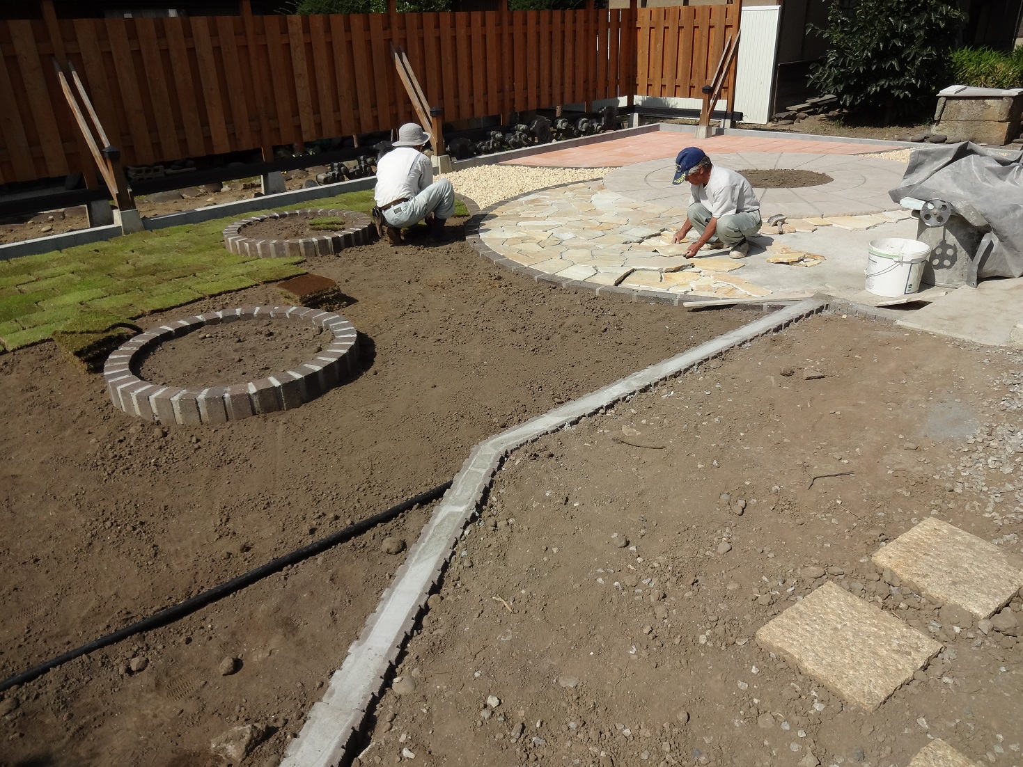 芝張りと自然石を張っているところですemoji
