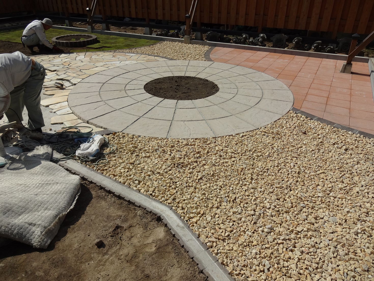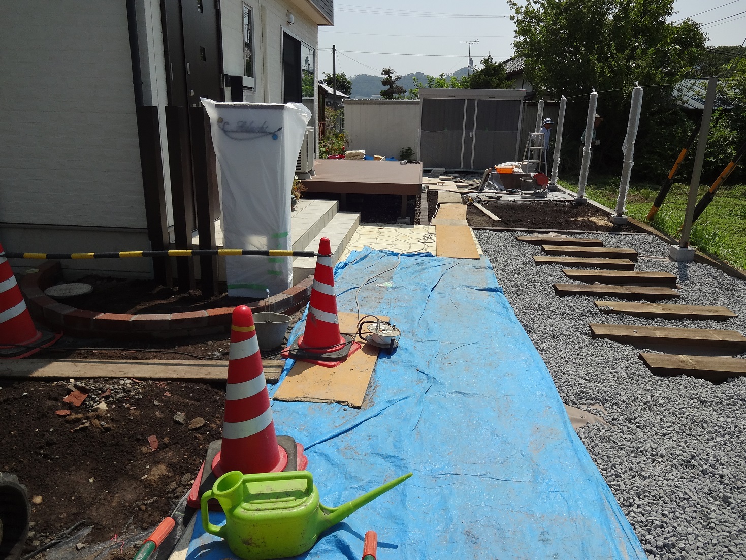 工事中のU様邸、庭の工事になります。