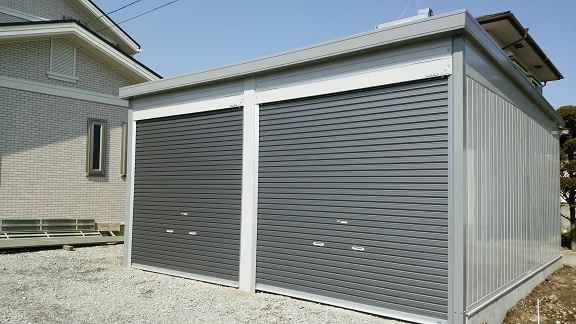 今日はT様邸の変形対応の折板タイプ3台用カーポートとイナバガレージ工事が