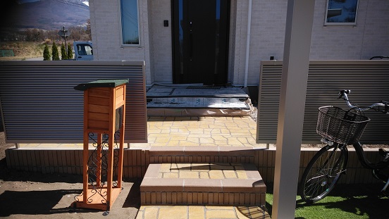 玄関アプローチ・フェンス工事・駐車場2台用カーポート・土間コンクリート部分