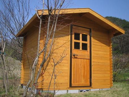 とても寒い日と、暖かい日が、日々入れ変わるような、天候不順が続いておりますが、そんな中で、先日のとっても良く晴れた日に施工させていただいた木製物置です。