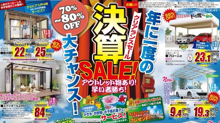 お待たせいたしました!! 今週末より いよいよ 決算クリアランスセール が開催致します。 数量限定のお買い得品など年に一度のビッグセールです! 冷たいかき氷などのサービスもしておりますのでご家族お揃いでお出かけ下さいませ。 (上記サービスは19日~21日の3日間 佐久店にて実施) ※詳細は当日の朝刊折込チラシをご覧くださいませ。 PR |