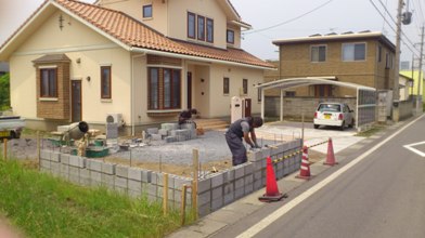 まずは下地のブロックを積み、このあと塗壁で仕上げます。