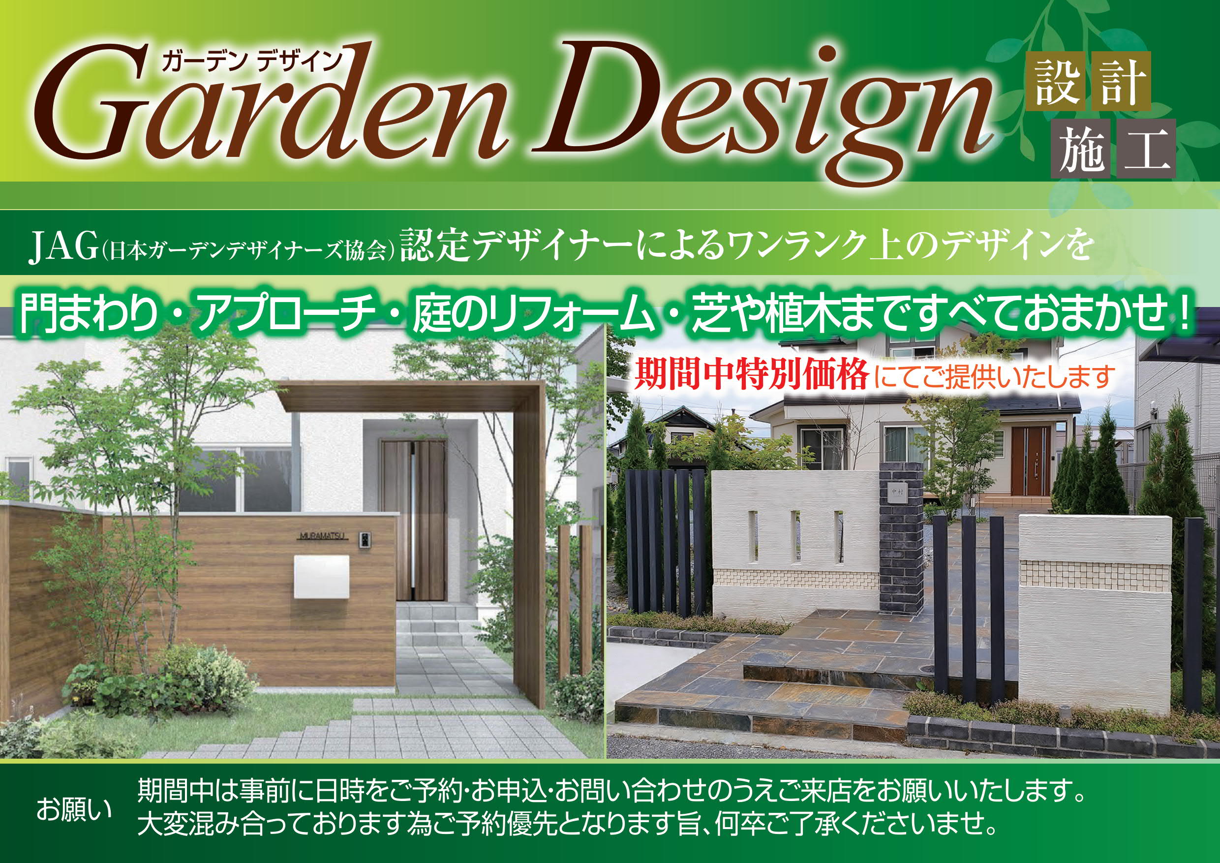 長野県佐久市・上田市・小諸市・軽井沢町・東御市・御代田町・東信地域・庭園・ガーデン・エクステリア・外構・カーポート・ガレージ・新築・リフォーム・CAD設計・工事施工は当社にお任せください。