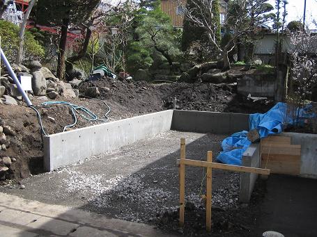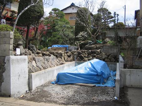 そのあと、造園業を営むお施主様施工の石積みで、庭部分の土止めと玄関までのアプローチをしていただいて・・・