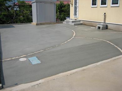 先週から入っているT様邸。 駐車スペースに土間コンクリートを打ちました。目地にレンガが入っています。(養生しているためわかりづらいですが)