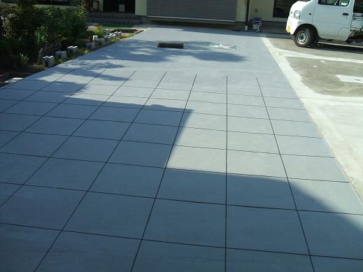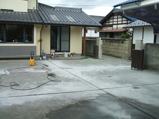 広い駐車スペースのコンクリート部分の左官工事のご紹介です。