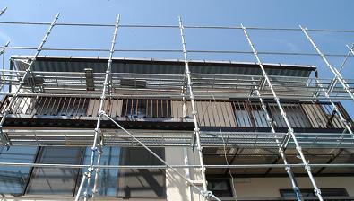 母屋3階に1部鉄骨土台をつくり、間口を5間(約9m)に延ばしました。