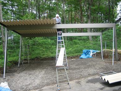 3台用カーポート。梁を一発で飛ばしており、めちゃくちゃ重い。
