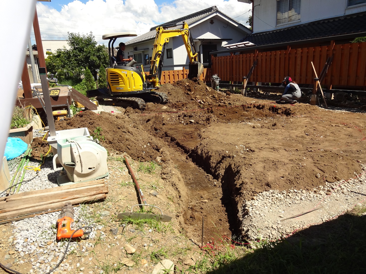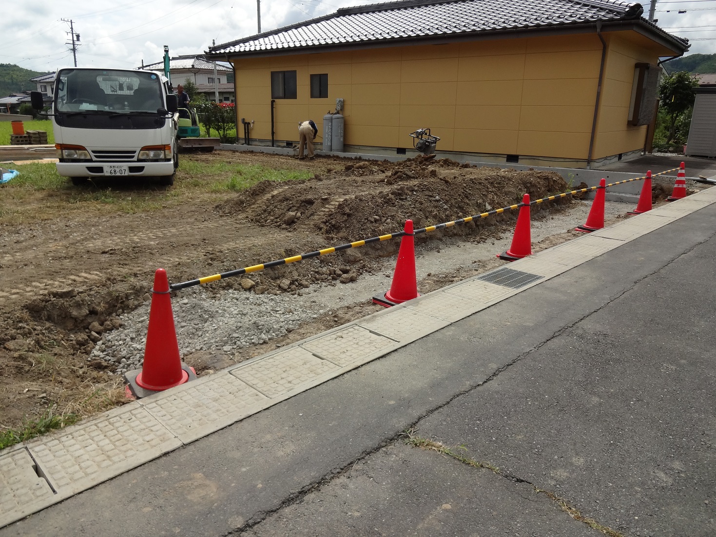 お盆休み明けからA様邸の外構工事が始まりました。