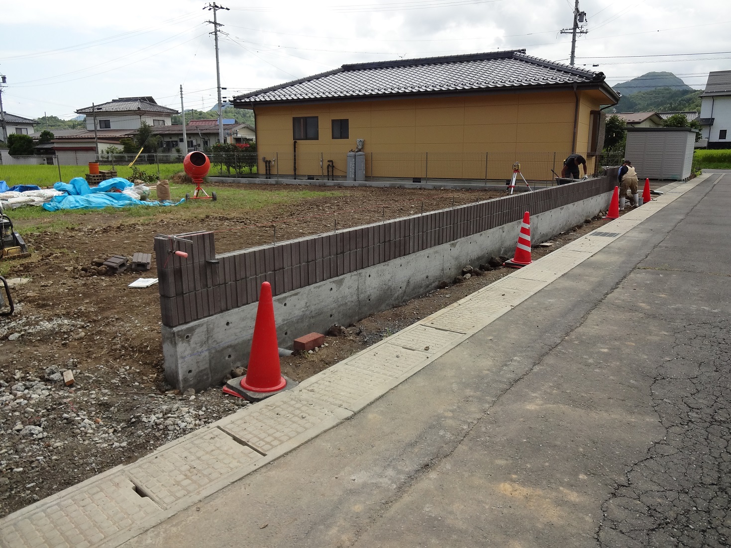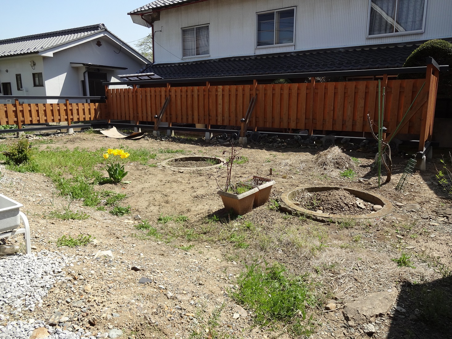 隣地側は、擁壁を作りとフェンスで仕切りました