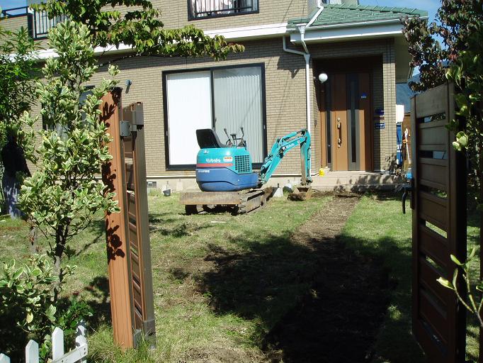 庭全面に芝生貼ってありますが、すべて剥ぎ取り整地してキレイにします。