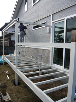 こちらはT様邸のサンルームとデッキテラスの工事です。