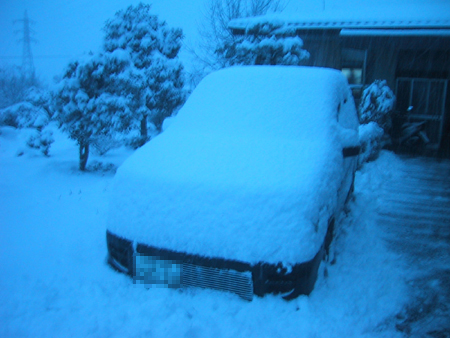 我が家のある上田市では一晩で20cmほど積もり、早朝の出勤時には自動車や庭の木々もすっかり雪に埋もれておりました。