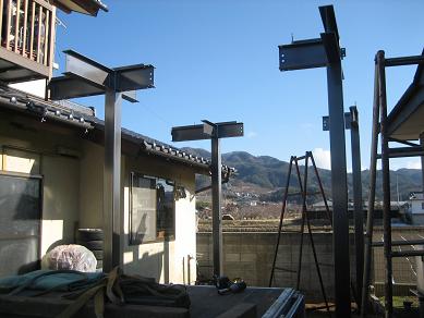 鉄骨の架台を組み、上にプレハブを建てる・・・言葉で言えば簡単ですが、