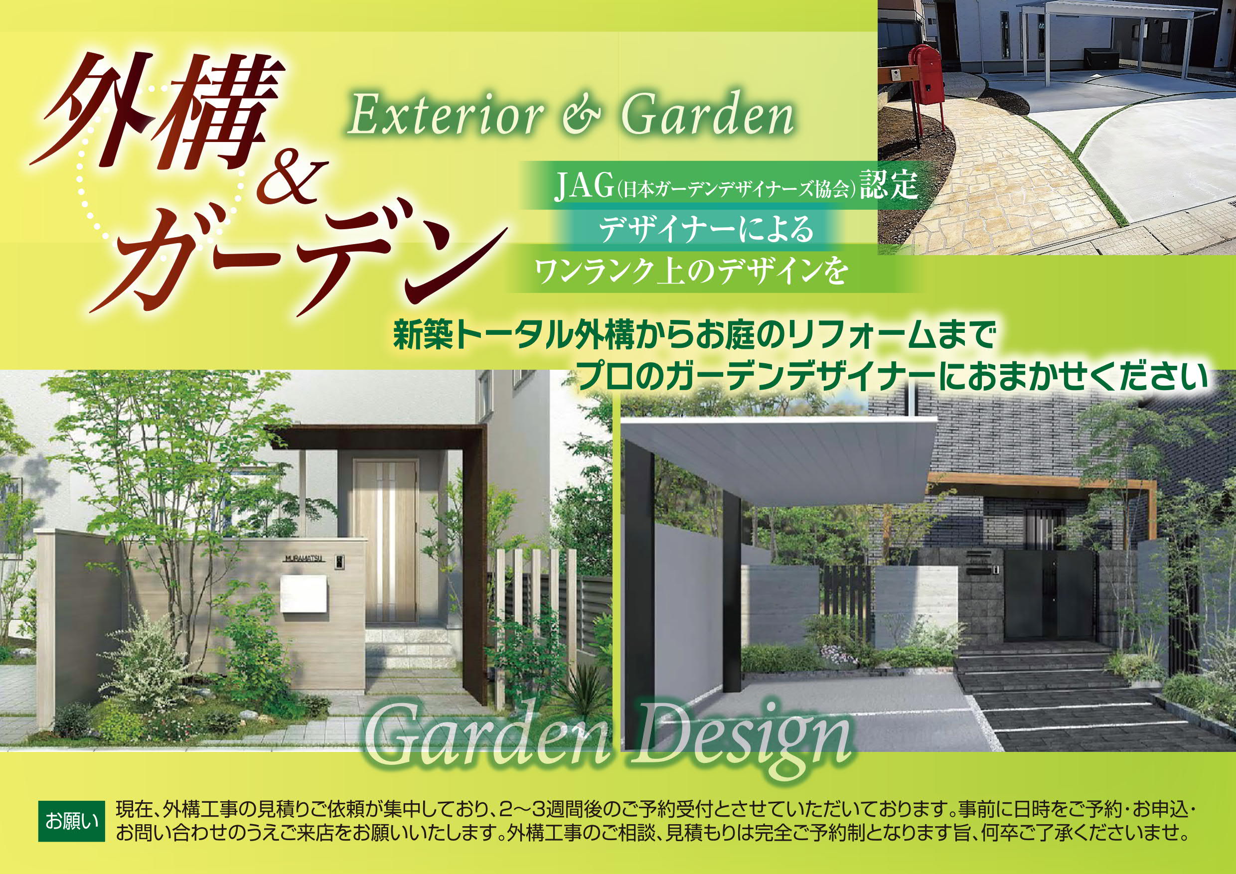 長野県佐久市・上田市・小諸市・軽井沢町・東御市・御代田町・東信地域・庭園・ガーデン・エクステリア・外構・カーポート・ガレージ・新築・リフォーム・CAD設計・工事施工は当社にお任せください。