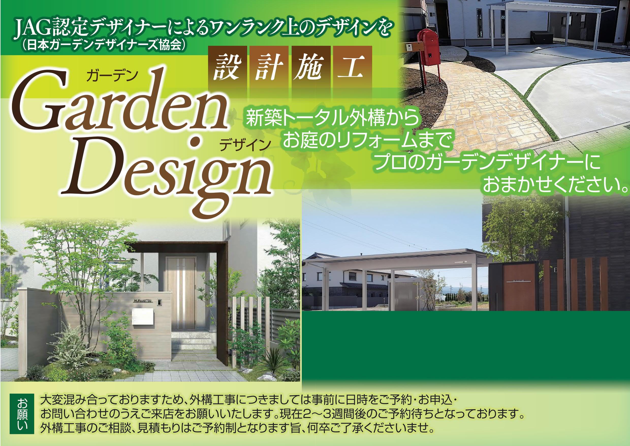 長野県佐久市・上田市・小諸市・軽井沢町・東御市・御代田町・東信地域・庭園・ガーデン・エクステリア・外構・カーポート・ガレージ・新築・リフォーム・CAD設計・工事施工は当社にお任せください。
